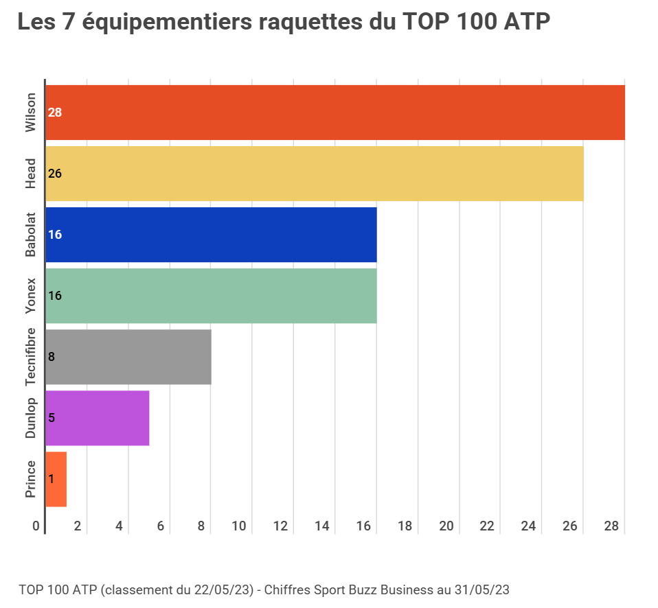 La marque Head se positionne en 2ème position dans le classement des équipementiers sur le circuit ATP